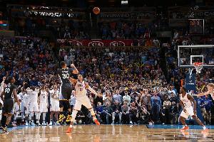 那一場比賽,庫里全場投籃24中14,三分16中12,罰球8中6,砍下46分3籃板6助攻2搶斷。ESPN著名解說麥克-布林在庫里完成這記驚天三分絕殺之后,喊出了那句經(jīng)典的“BANG!BANG!”解說詞。