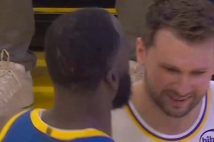 勇士與湖人比賽開(kāi)場(chǎng)前,追夢(mèng)找到東契奇和他擁抱致意,并對(duì)他說(shuō):“Happy Birthday!”東契奇則回應(yīng):“感謝兄弟!”