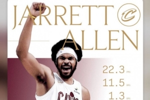 體育資訊3月1日訊 今天,騎士官方曬出了賈勒特·阿倫二月份的數(shù)據(jù),場均能得到22.3分11.5籃板1.3蓋帽,投籃命中率74%,得到10次兩雙。