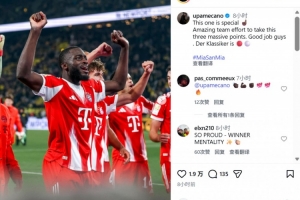 賽后拜仁后衛(wèi)于帕梅卡諾在社媒曬出球隊?wèi)c祝勝利的照片,配文寫道:“這場勝利尤為珍貴,全隊付出不懈的努力收獲重要的三分!大家漂亮的完成任務(wù)!國家德比勝利屬于拜仁!”