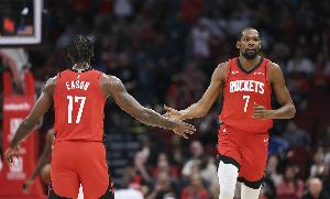 本場比賽,火箭前鋒杜蘭特拼盡全力,出場37分鐘20投12中,三分8中2、罰球6中6空砍32分6籃板8助攻2蓋帽,正負值+5。
