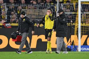 體育資訊03月01日訊 德甲第24輪,多特蒙德主場2-3拜仁輸?shù)魢业卤?,多特?duì)長埃姆雷·詹因傷被換下。據(jù)《圖片報(bào)》報(bào)道埃姆雷·詹很可能遭遇重傷,最糟糕的情況是十字韌帶撕裂。比賽結(jié)束后兩隊(duì)球員也紛紛擁抱安慰埃姆雷·詹。
