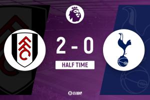 上半場(chǎng)補(bǔ)時(shí)4分鐘,富勒姆2-0熱刺。