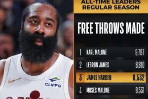 本場(chǎng)過(guò)后,哈登生涯總罰球命中數(shù)來(lái)到8535個(gè),超越摩西·馬龍(8531個(gè))升至歷史第3,排在第2的是詹姆斯(8810個(gè))。