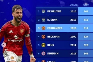 體育資訊3月2日訊 在本輪英超,曼聯(lián)2-1擊敗水晶宮,B費送出助攻,這也是他曼聯(lián)生涯317次出場送出的第100次助攻。以下為五大聯(lián)賽中場球員為單一球隊送出100次助攻最快用時榜: