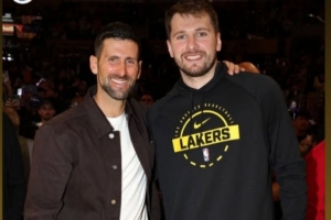 本場(chǎng)網(wǎng)壇巨星德約科維奇現(xiàn)場(chǎng)觀戰(zhàn)并與東契奇合影,NBA官方曬出了兩人合影。賽后東契奇在INS上轉(zhuǎn)發(fā)并寫(xiě)道:“??????”