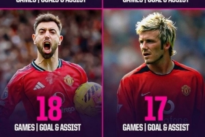 在曼聯(lián)的英超歷史上,只有韋恩·魯尼(35次)和吉格斯(22次)做到這一點(diǎn)的次數(shù)比B費(fèi)更多,他已經(jīng)超過了貝克漢姆(17次)。