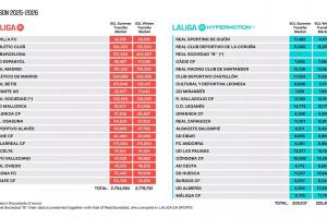 體育資訊03月03日訊 西甲官方公布了冬窗結(jié)束之后西甲各球隊(duì)的最新工資帽,皇馬、巴薩、馬競(jìng)排名前三。