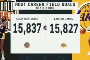湖人球星勒布朗·詹姆斯目前職業(yè)生涯進球數(shù)15827記,距離歷史第一的賈巴爾僅差10記,有望在今日完成超越登頂歷史第一。