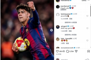 貝爾納爾社媒曬出慶祝進(jìn)球的照片,配文:“身為巴薩人感到驕傲。”
