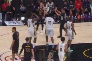 比賽進行至第三節(jié)時,裁判對鵜鶘和湖人同時發(fā)出警告:“兩隊都在不停地抱怨!兩隊都在不停地抱怨!(Continuous complaining both teams!)”