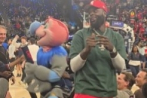GIF-老熟人!史蒂芬森現(xiàn)身快船主場(chǎng)&吉祥物邀請(qǐng)他一起發(fā)T恤