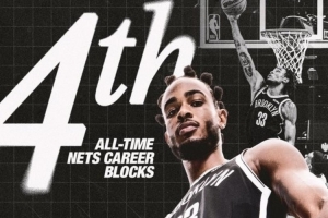 截至發(fā)稿,他送出1次蓋帽,籃網(wǎng)生涯蓋帽數(shù)達(dá)到600,順勢(shì)超越邁克·戈明斯基升至隊(duì)史第四位。排在第三的是巴克·威廉姆斯的696次。