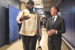 體育資訊3月6日訊 今日NBA焦點(diǎn)戰(zhàn),湖人客場(chǎng)挑戰(zhàn)掘金,詹姆斯賽前到場(chǎng)后見到了自己的播客搭檔納什。