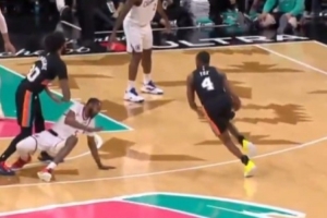 GIF-還有個回合險些將小卡直接晃倒,可惜三分沒進
