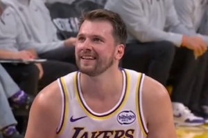 GIF-首節(jié)東契奇造了前隊友布倫森一個犯規(guī),咧嘴笑了
