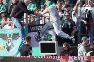 在昨晚進(jìn)行的第25輪德乙聯(lián)賽,普魯士明斯特主場(chǎng)1-2負(fù)于柏林赫塔。上半場(chǎng)補(bǔ)時(shí)階段,主隊(duì)在禁區(qū)內(nèi)疑似犯規(guī),主裁判來(lái)到場(chǎng)邊觀看VAR視頻回放。此時(shí)一名普魯士明斯特球迷蒙面翻越護(hù)欄闖進(jìn)球場(chǎng),并拔掉了VAR顯示器的電源插頭,以此干擾主裁判的執(zhí)法。