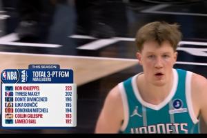 克尼佩爾賽季至今已投進(jìn)223記三分,高居聯(lián)盟第一,領(lǐng)先第二的馬克西多達(dá)21記。