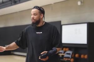 狄龍?zhí)岬綄π】ㄕf垃圾話沒用,小卡只會回復(fù)“放松點(diǎn),兄弟,打球吧,來吧”,試圖掐他推他用身體撞他,小卡還是說“喲哥們,你就打球吧”,然后小卡走過去就是一記后仰跳投。