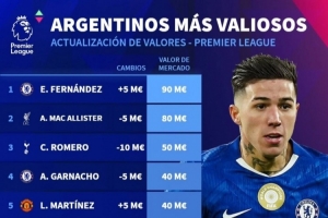體育資訊3月10日訊 德國(guó)轉(zhuǎn)會(huì)市場(chǎng)更新了英超球員的身價(jià),并列出英超阿根廷球員德轉(zhuǎn)身價(jià)排名,恩佐9000萬(wàn)歐居首。