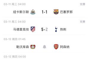 利物浦率先出戰(zhàn)客場0-1不敵加拉塔薩雷,紐卡主場1-1遭巴薩絕平,熱刺則是客場2-5慘敗。