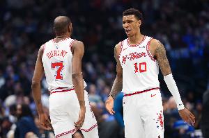 首節(jié)比賽,火箭進(jìn)攻端靠杜蘭特和小賈巴里·史密斯撐起了,二人內(nèi)外線都很高效,其中杜蘭特7中5(三分2中2)拿到12分1籃板1蓋帽;小賈巴里·史密斯4中4(三分2中2)拿到10分1籃板1助攻。
