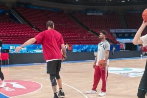賽前,北京隊(duì)眾將進(jìn)行踩場(chǎng)訓(xùn)練,四外援悉數(shù)在列,新援麥基一同亮相。