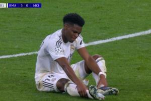 體育資訊03月12日訊 皇馬vs曼城,瓊阿梅尼第64分鐘受傷,在場邊接受治療,隨后暫時(shí)回到了比賽!