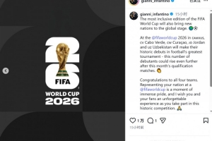 體育資訊3月12日訊 國際足聯(lián)主席因凡蒂諾社媒發(fā)文,對即將首次亮相世界杯的國家隊表示祝賀。