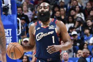 全場比賽,哈登出戰(zhàn)37分鐘,16投11中,三分9中5,罰球5中3,砍下30分6籃板8助攻,騎士生涯首次單場30分,此前11場最高23分。