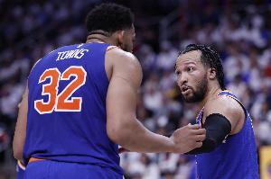 本場比賽,尼克斯多點(diǎn)開花,4人得分20+,其中布倫森28分,克拉克森27分,阿努諾比22分,唐斯21分。