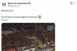 藥廠社媒曬出安德里希破門視頻,并配文:‘愿望清單:對陣阿森納時(shí)攻入一粒阿森納式進(jìn)球?’。
