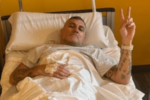 圖中他穿著病號(hào)服,面帶微笑,對(duì)著鏡頭比出勝利的"V"字手勢(shì)。維埃里在照片下寫道:這一關(guān)也闖過去了。