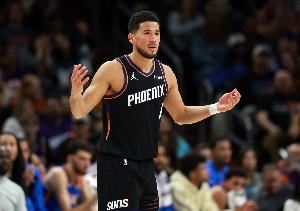 第一節(jié),太陽球星布克高效發(fā)揮,打滿12分鐘10投6中,罰球3中3砍下15分2籃板1助攻。