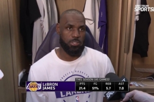 體育資訊3月13日訊 今日,湖人142-130主場擊敗公牛,取得四連勝。賽后,湖人球星詹姆斯接受了采訪。