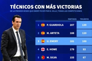 據(jù)德國轉(zhuǎn)會市場統(tǒng)計,埃梅里執(zhí)教維拉以來帶隊贏得100場比賽,英超主帥同期勝場第三多。