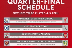 體育資訊3月13日訊 足總杯官方公布了1/4決賽的開球時間,曼城vs利物浦4月4日19點45分開球。
