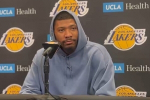 體育資訊3月15日訊 NBA常規(guī)賽,湖人主場127-125加時險勝掘金,賽后斯瑪特接受采訪。