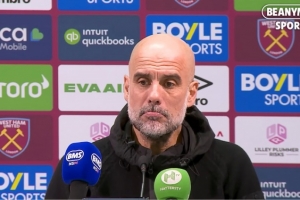 體育資訊3月15日訊 英超第30輪比賽,曼城在客場(chǎng)以1-1的比分戰(zhàn)平西漢姆聯(lián)。在少賽一場(chǎng)的情況下,他們已經(jīng)落后榜首的阿森納9分,想要奪冠非常困難。賽后,曼城主帥瓜迪奧拉談?wù)摿讼嚓P(guān)話題。