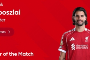 本場(chǎng)比賽索博斯洛伊打進(jìn)精彩任意球,賽后當(dāng)選英超官方球迷票選全場(chǎng)最佳球員。