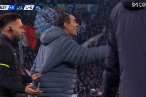 體育資訊03月16日訊 米蘭vs拉齊奧第97分鐘,補(bǔ)時(shí)時(shí)間已過,裁判對(duì)場邊薩里出示紅牌!