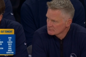 比賽中,轉(zhuǎn)播方曬出了勇士的傷病名單,以下球員今天都不能出戰(zhàn):
