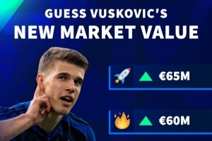 德轉(zhuǎn)預(yù)熱武什科維奇身價變動(目前4000萬歐):