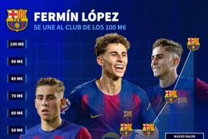 體育資訊3月17日訊 德國轉會市場更新社媒動態(tài),曬出了巴薩中場費爾明身價變化圖。
