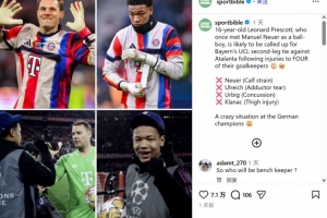 體育資訊3月17日訊 據(jù)《RMC》報(bào)道,拜仁16歲門將普雷斯科特幾周前還是在諾伊爾身后撿球的球童,如今他有望成為球隊(duì)隊(duì)史出場(chǎng)第二年輕球員,僅次于萬納爾。