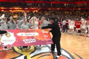 此役過后,因勝負關系占優(yōu),捷克隊力壓巴西隊晉級世界杯正賽,球員賽后合影時向中國女籃比心。