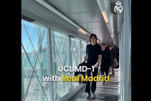 皇馬官推曬出了球隊在曼徹斯特第一天的視頻,全隊在西班牙當?shù)貢r間10點20出發(fā),歷經(jīng)三小時飛行后抵達曼徹斯特。
