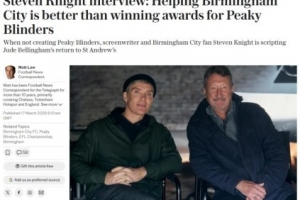 體育資訊3月17日訊 《浴血黑幫》主創(chuàng)、伯明翰資深球迷史蒂文·奈特接受采訪,談到伯明翰新球場(chǎng)設(shè)計(jì)、對(duì)貝林厄姆回歸的憧憬、家庭與俱樂(lè)部的深厚淵源,以及《浴血黑幫》IP如何影響俱樂(lè)部現(xiàn)實(shí)。