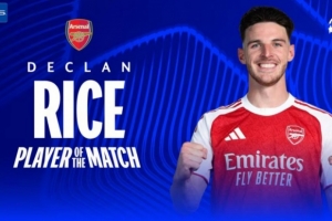 賴斯本場比賽為阿森納踢滿全場,并打進一球,歐冠官方宣布,他當選此役全場最佳球員。