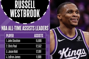 目前,威少10333助攻,與馬克·杰克遜和納什分別差1次和2次。